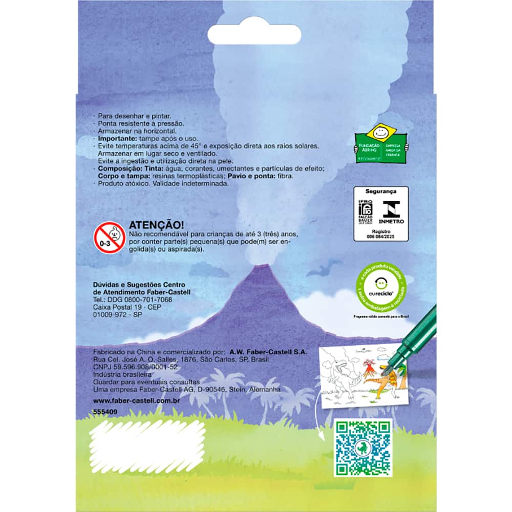 10 cores vibrantes 3 cores com efeito metálico Acompanha cartela de adesivos QR code na embalagem com acesso a desenhos de dinossauro para colorir Perfeito para uso na escola e em casa Avaliação do produto Você comprou este produto na Loja Faber-Castell ?